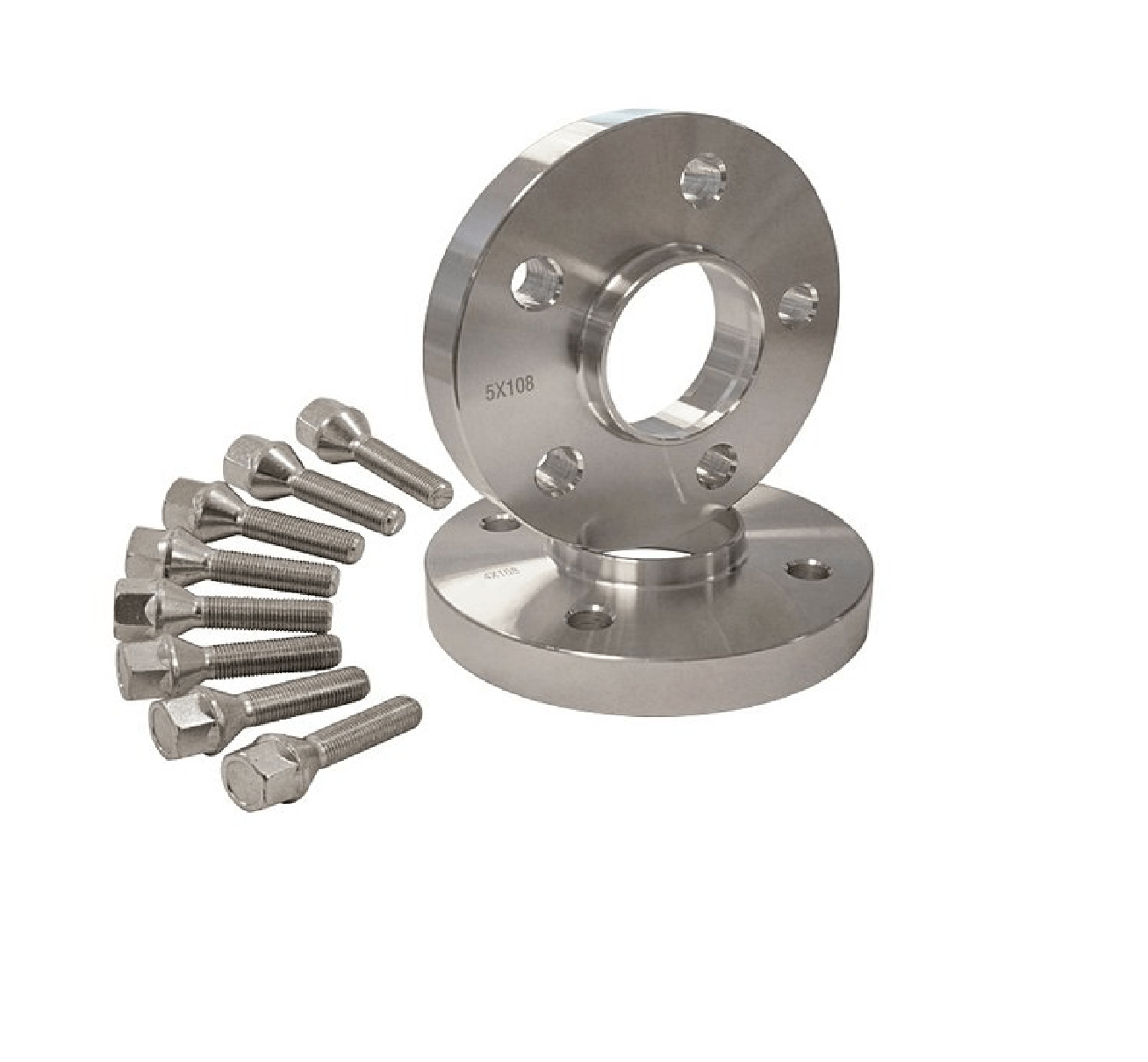 Juego de separadores de aluminio de doble centraje con tornillería incluida.